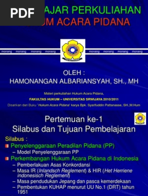 Bahan Ajar Perkuliahan Hukum Acara Pidana Ppt Download