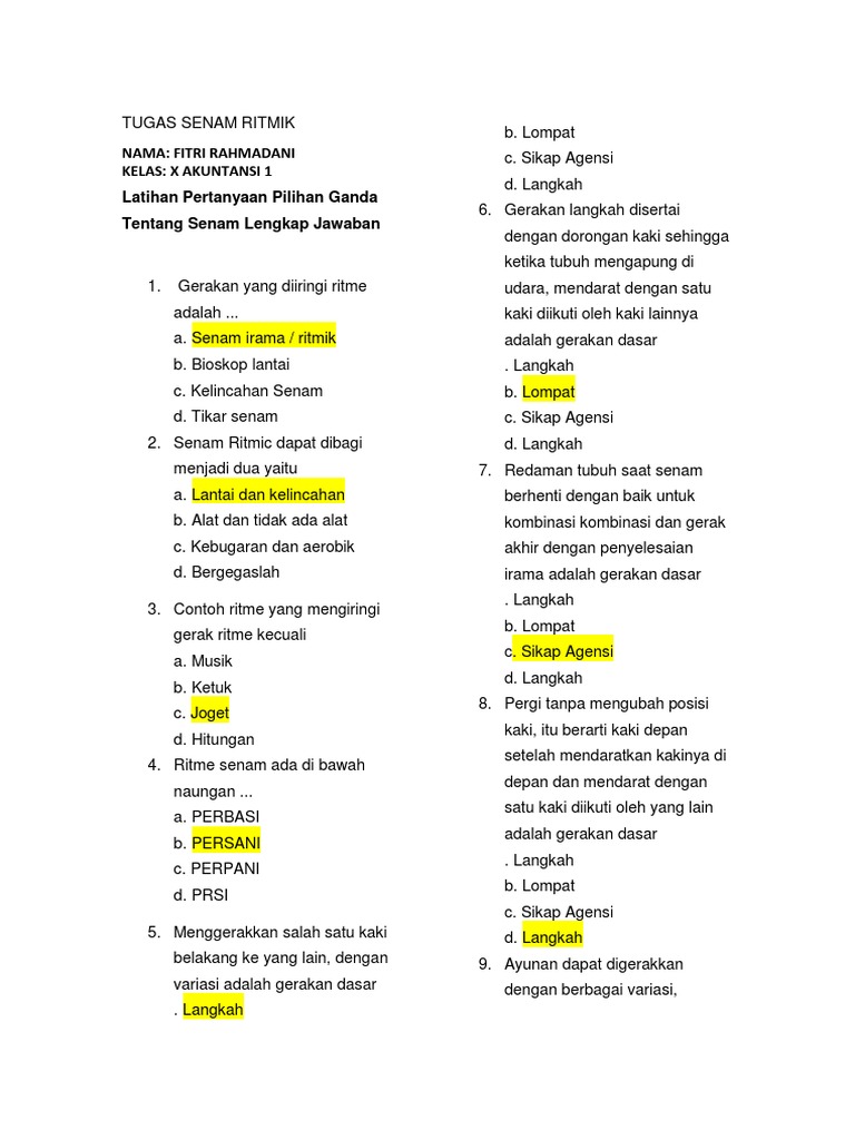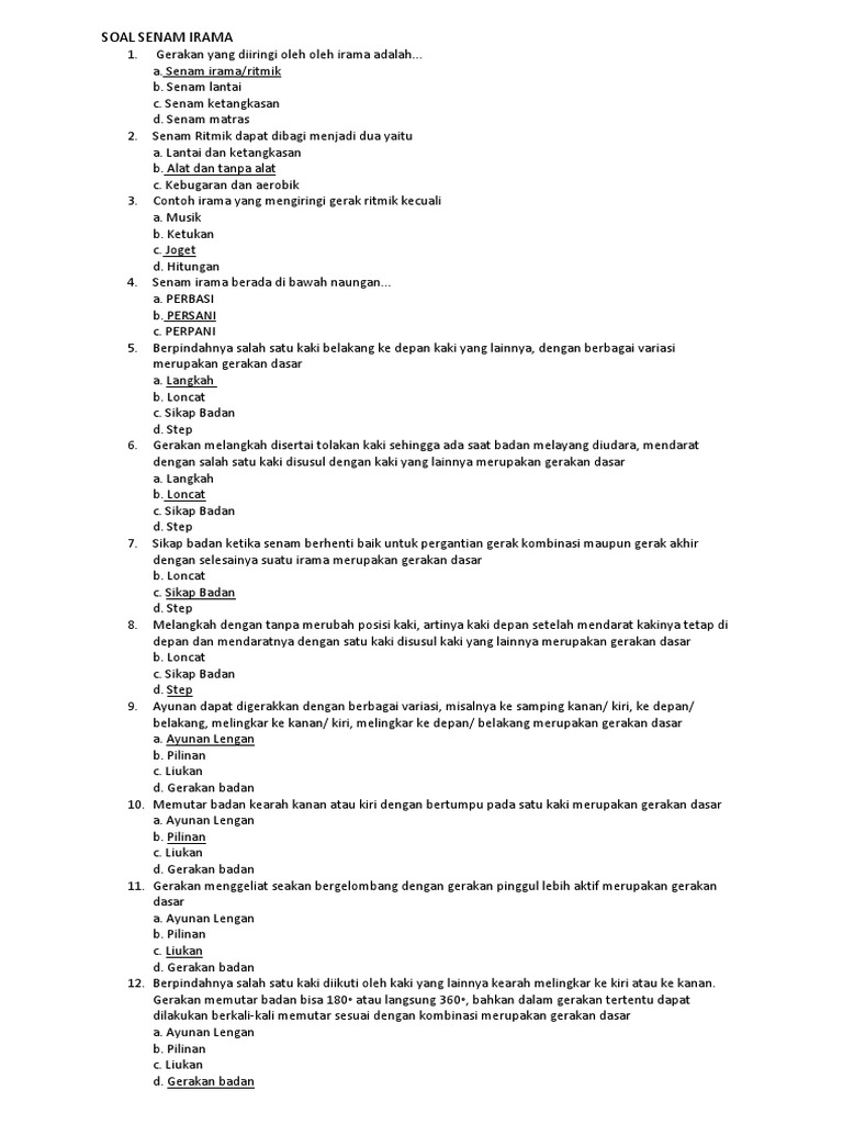 Uh Senam Irama Kelas 7 Physical Ed Quizizz