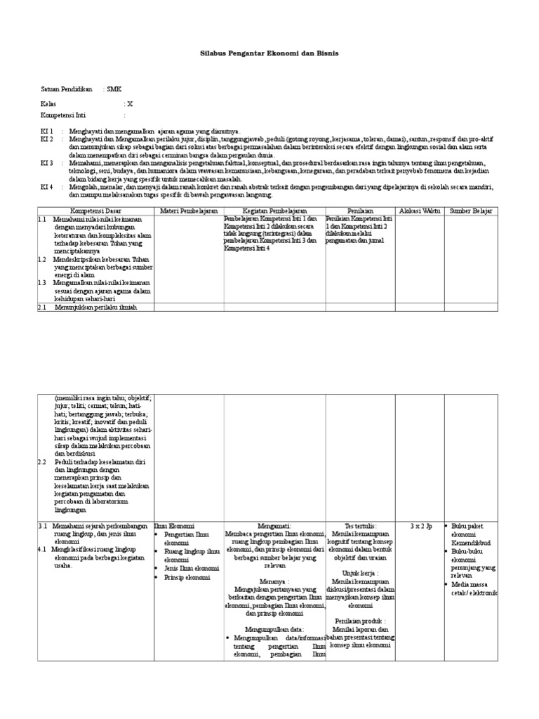 Silabus Pengantar Ekonomi Dan Bisnis Kelas X Dan Xi Terbaru Etika Twinning Academia Edu