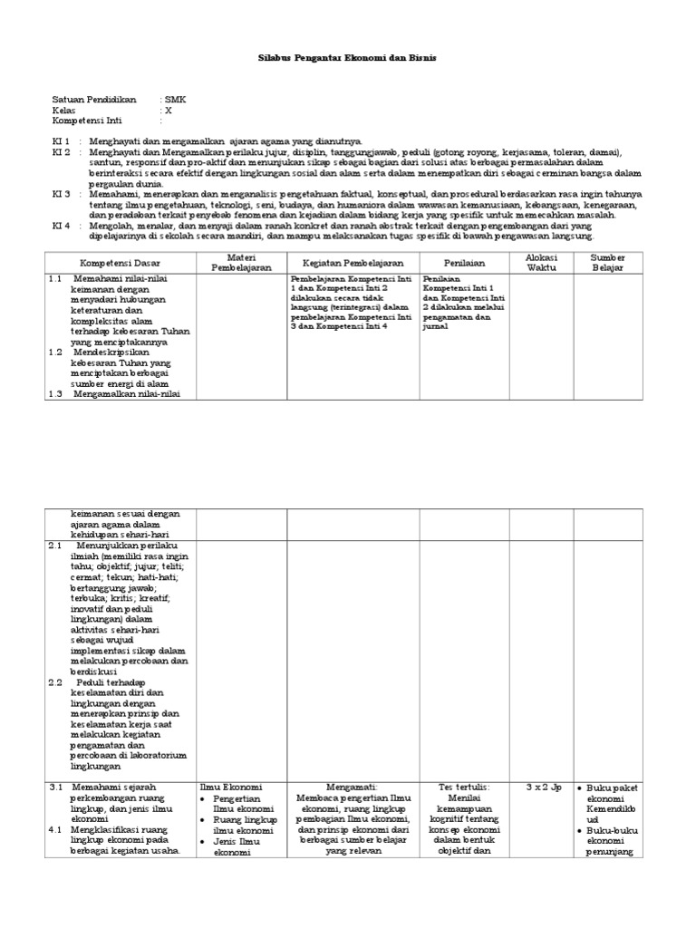 Silabus Ekonomi Bisnis Kelas X Smt 1 2 Baru Revisi Pdf