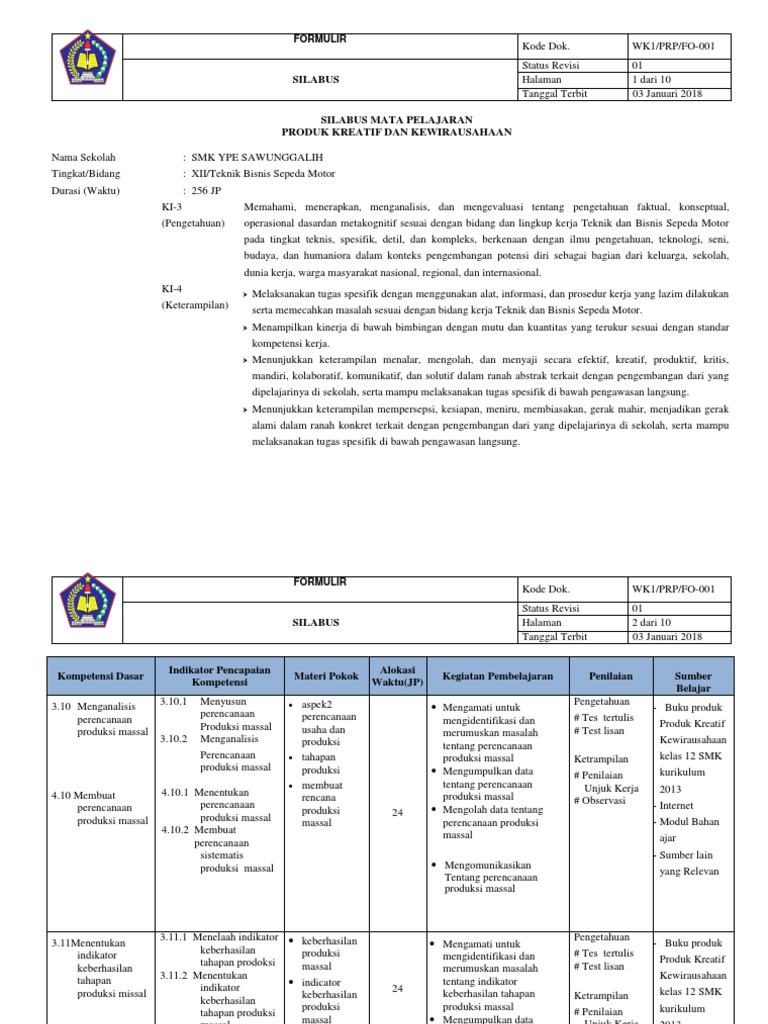 20 rows SILABUS MATA PELAJARAN. Video ini berisi Silabus Mata Pelajaran Produk Kreatif dan Kewirausahaan K2013 untuk Kelas XI SMK disesuaikan dengan Pandemi Covid 19 File dapat di unduh di. May 28 2020 Download.