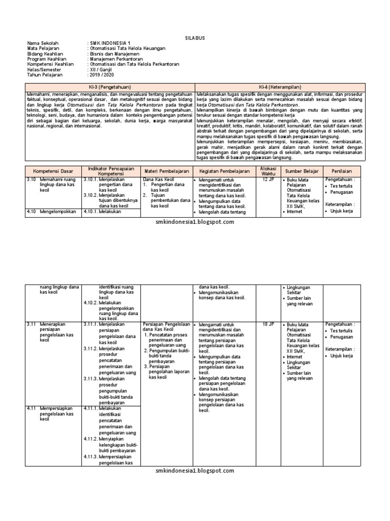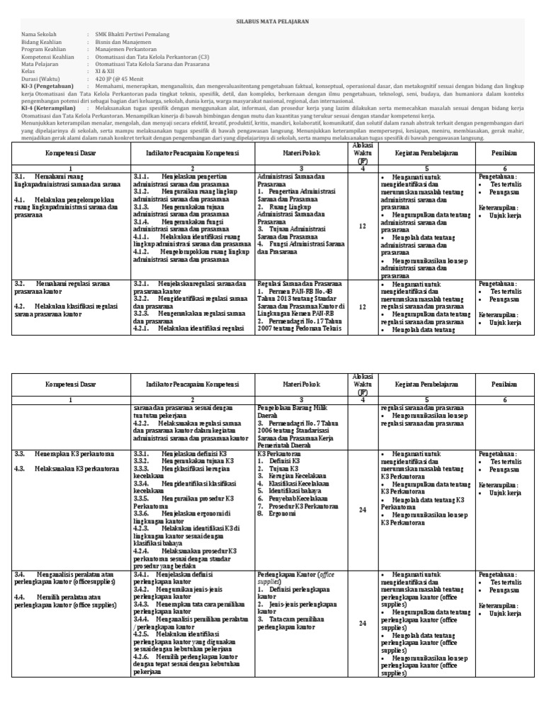 Silabus Kelas Xi Xii Otomatisasi Tata Kelola Sarana Dan Prasarana Pdf