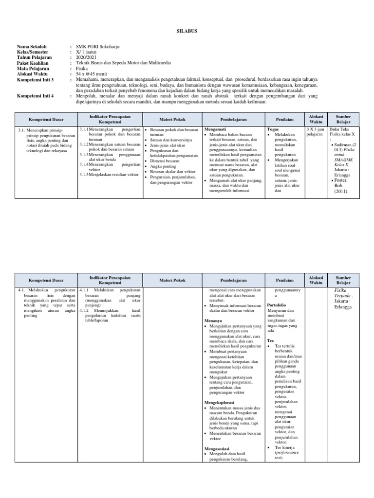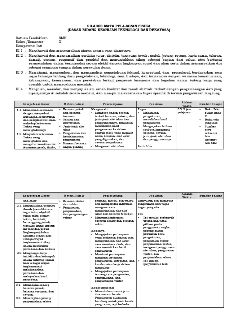 Silabus Fisika Smk Kelas X Kurikulum 2013 Pdf