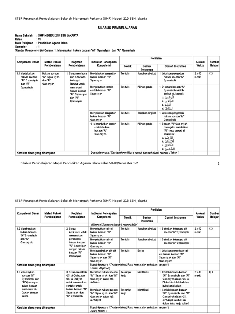 Perangkat Pembelajaran Mapel PAI K13 Revisi 2020 Kelas 78 9 Jenjang SMPMTs. SILABUS PAI 1-6 Disukai Diunduh 79. RPP dijabarkan dari silabus buat memusatkan aktivitas belajar partisipan didik dalam upaya menggapai KD.