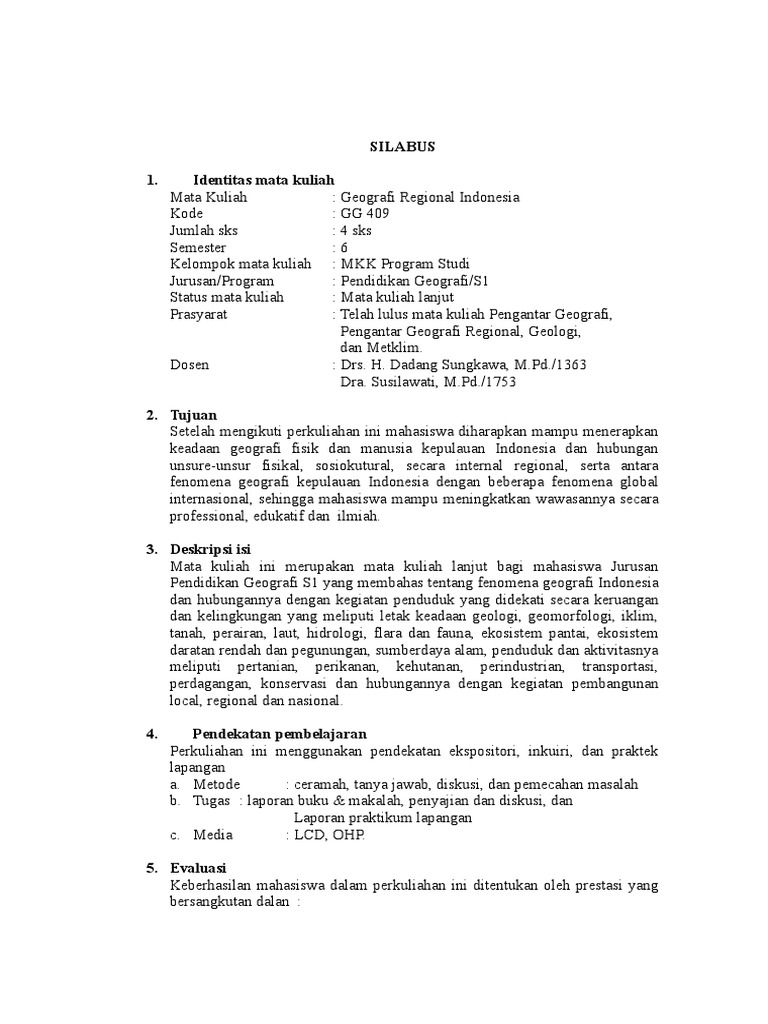 CONTOH SILABUS PEMBELAJAAN GEOGRAFI. Identitas mata kuliah Mata Kuliah. Home Makalah Pendididkan IPS CONTOH SILABUS PEMBELAJAAN GEOGRAFI.