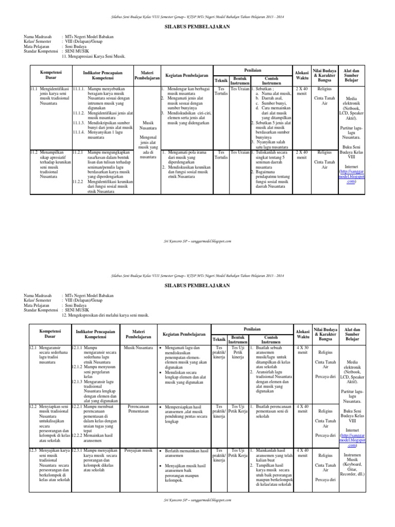 Silabus Seni Budaya Musik Kelas 8 Genap Pdf