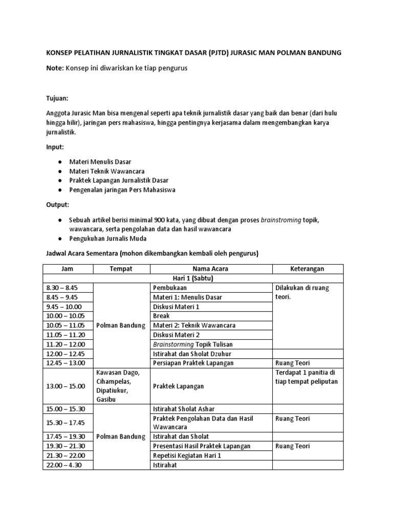 Konsep Pelatihan Jurnalistik Tingkat Dasar Pdf